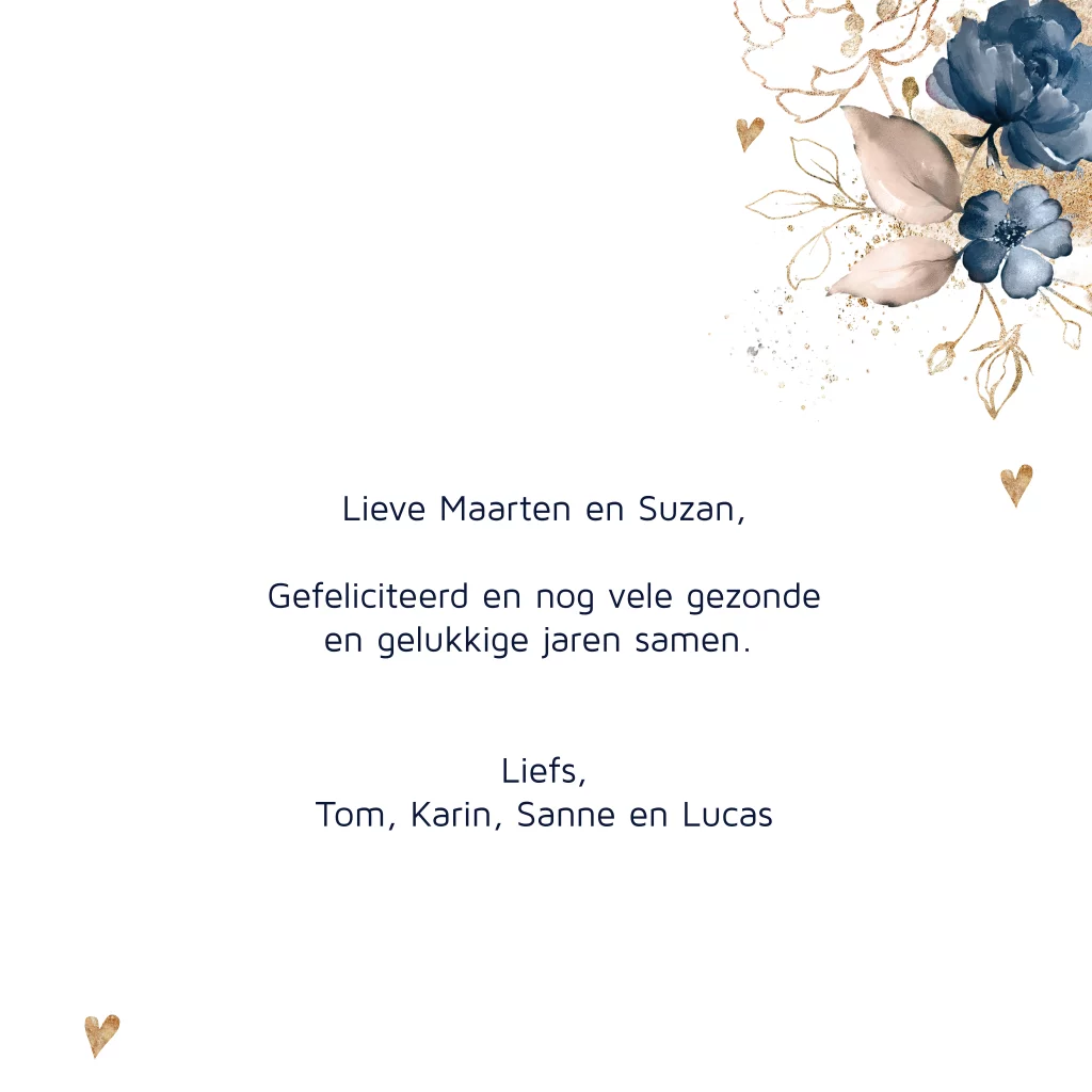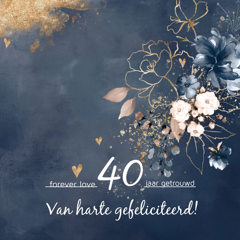 Feestelijke feliciatiekaart 40 jaar huwelijk donkerblauw met bloemen