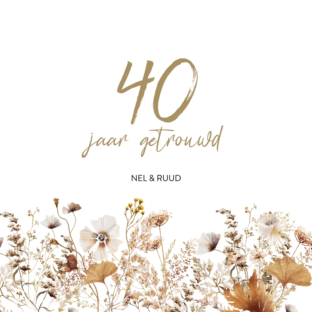 Uitnodiging 40 jaar getrouwd aquarel veld bloemen