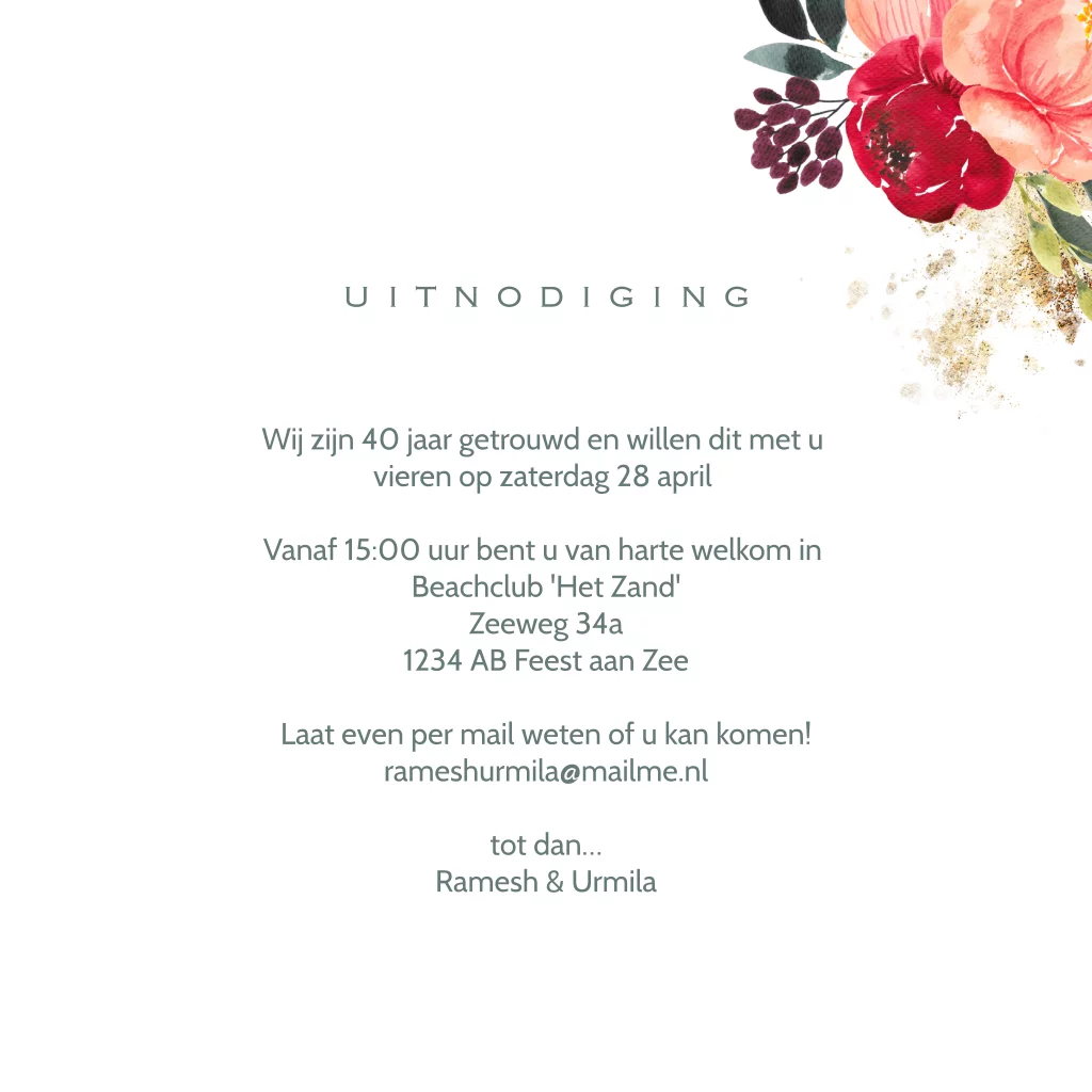 Uitnodiging 40 jaar huwelijk in dauw kleur bloemenkrans
