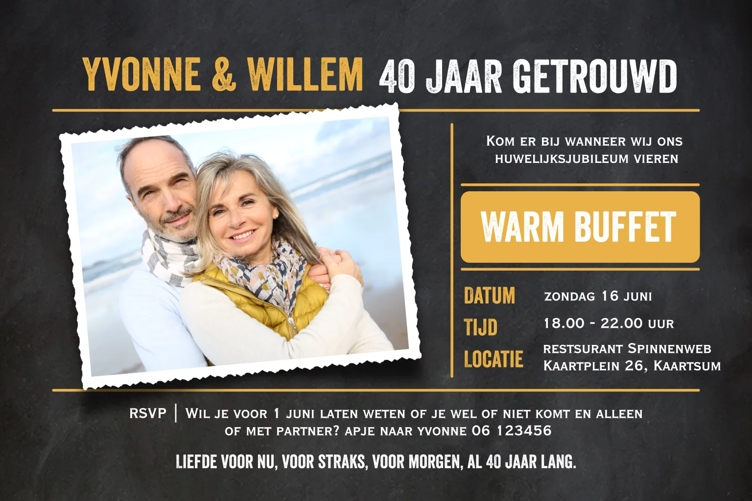 Uitnodiging 40 jarig huwelijksjubileum krijtbord