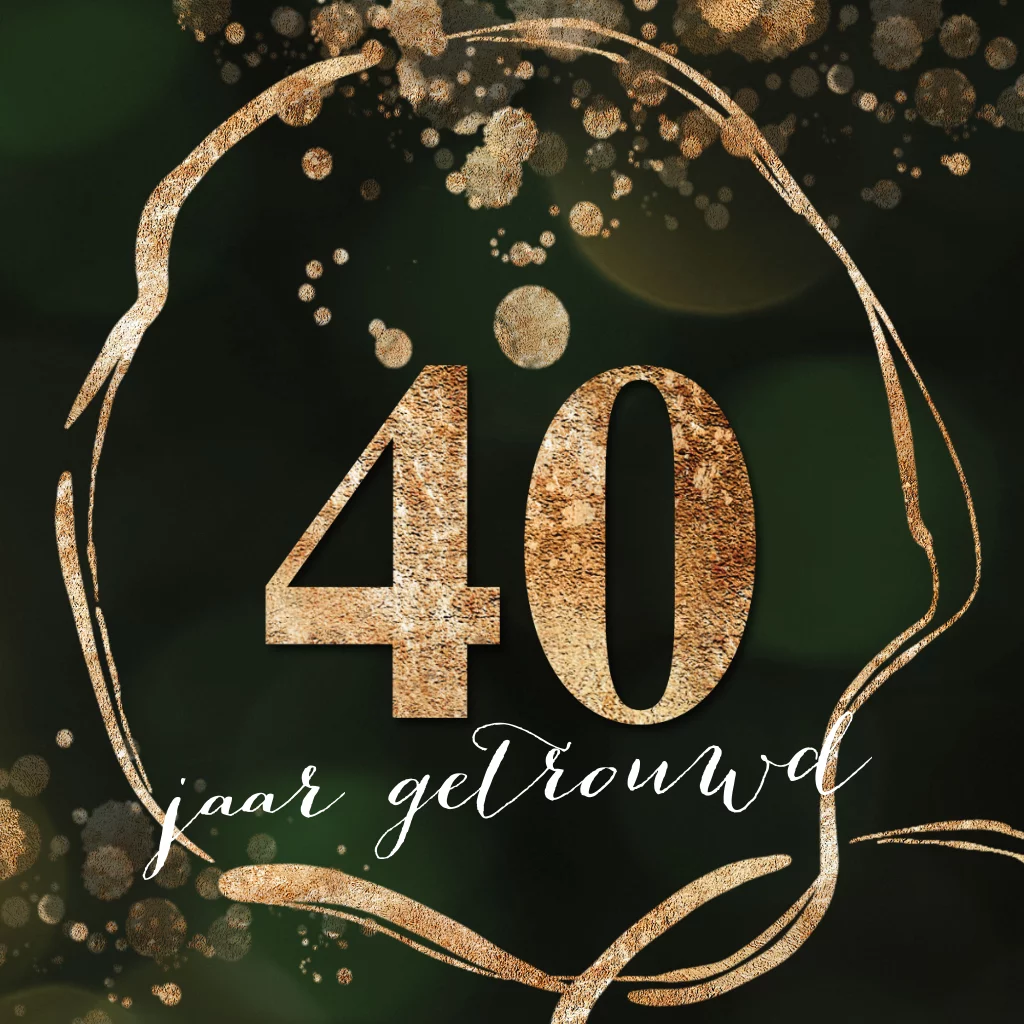 Prachtige uitnodiging voor een jubileum 40 jaar getrouwd met feestelijke groene ondergrond en goudlook confetti snippers.