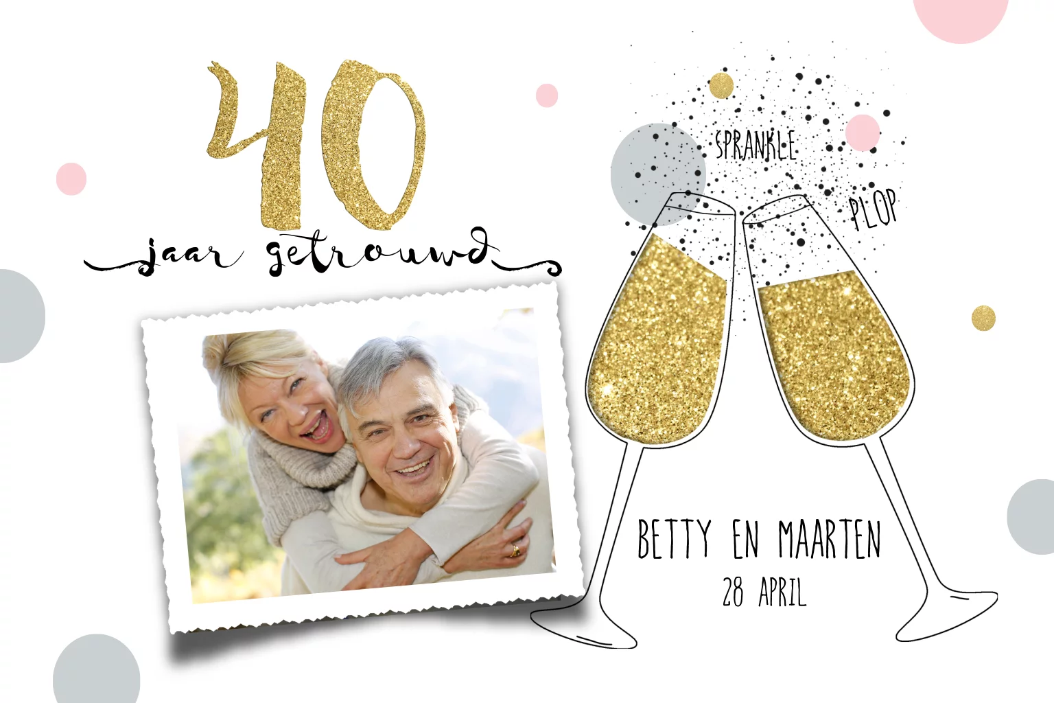 Unieke foto uitnodiging 40 jaar getrouwd champagne glazen
