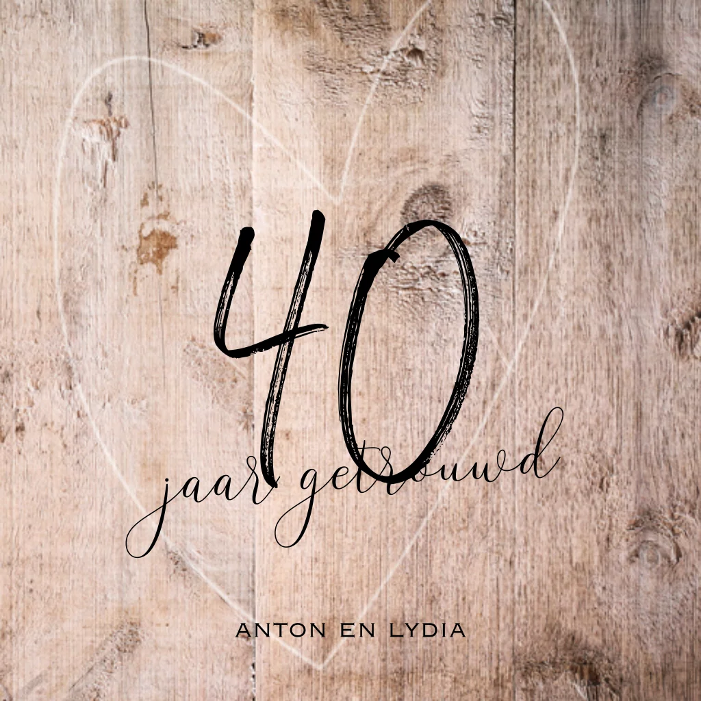 Unieke huwelijksjubileum met een houten structuur op de ondergrond. Met stoere veertig en lijn hartjes. Alles is te bewerken!