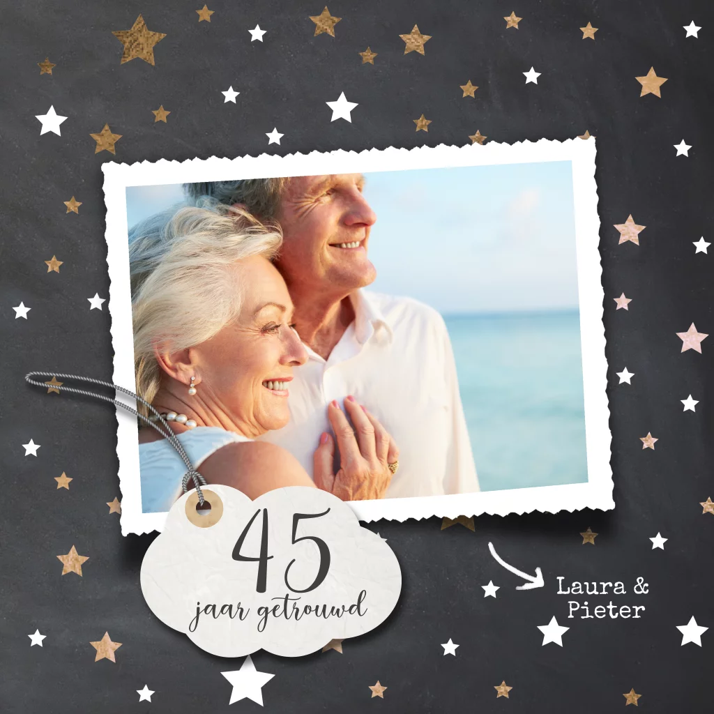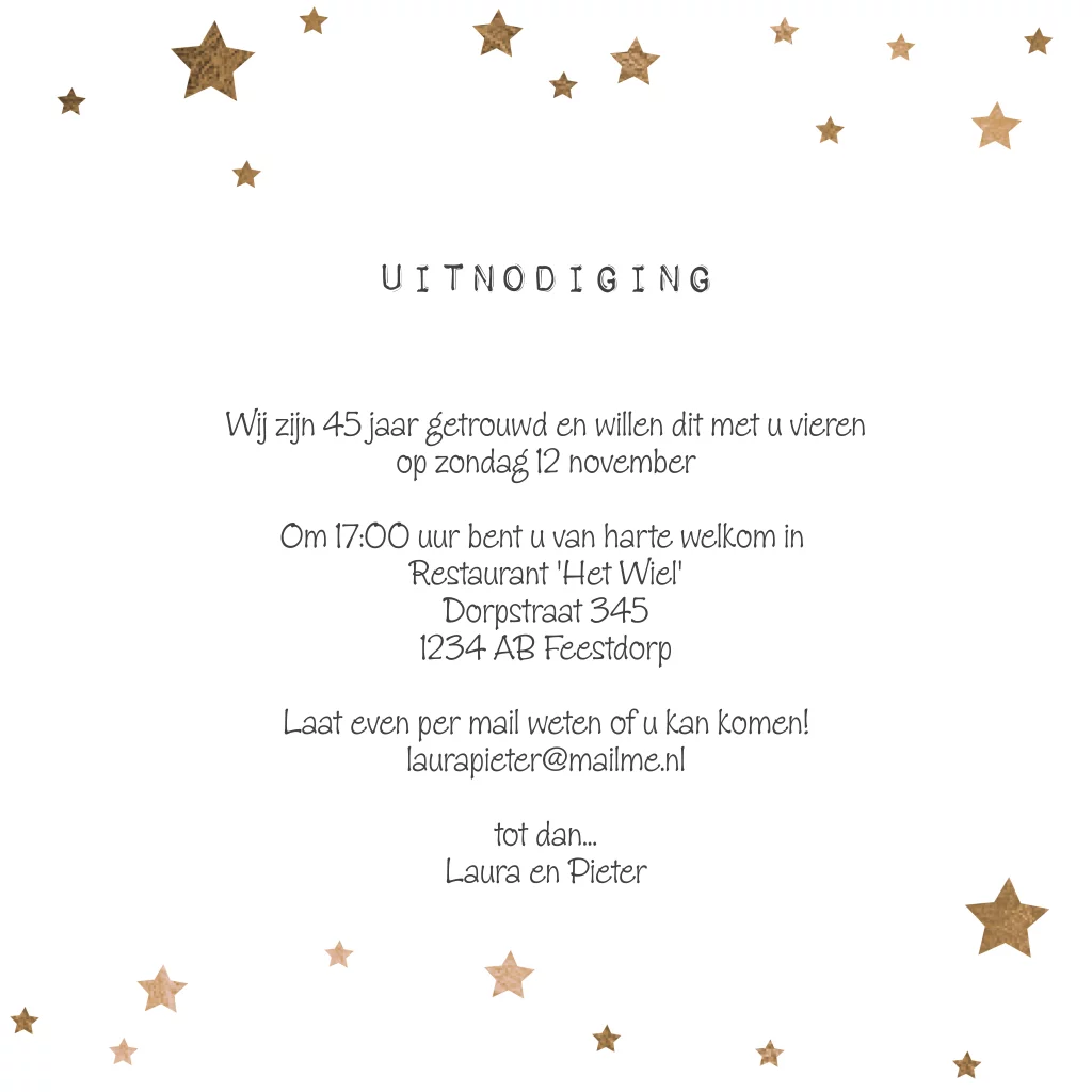45 jaar getrouwd uitnodiging kopere sterren en foto kader