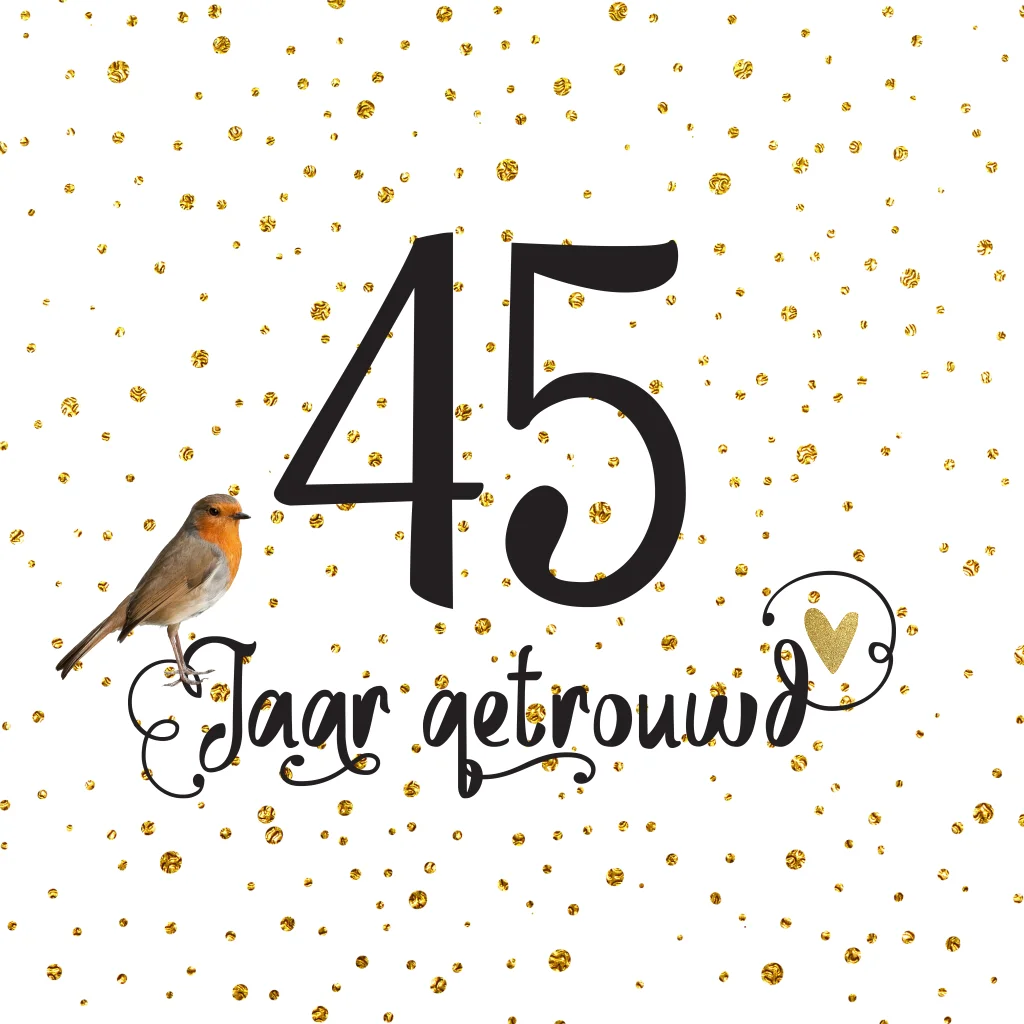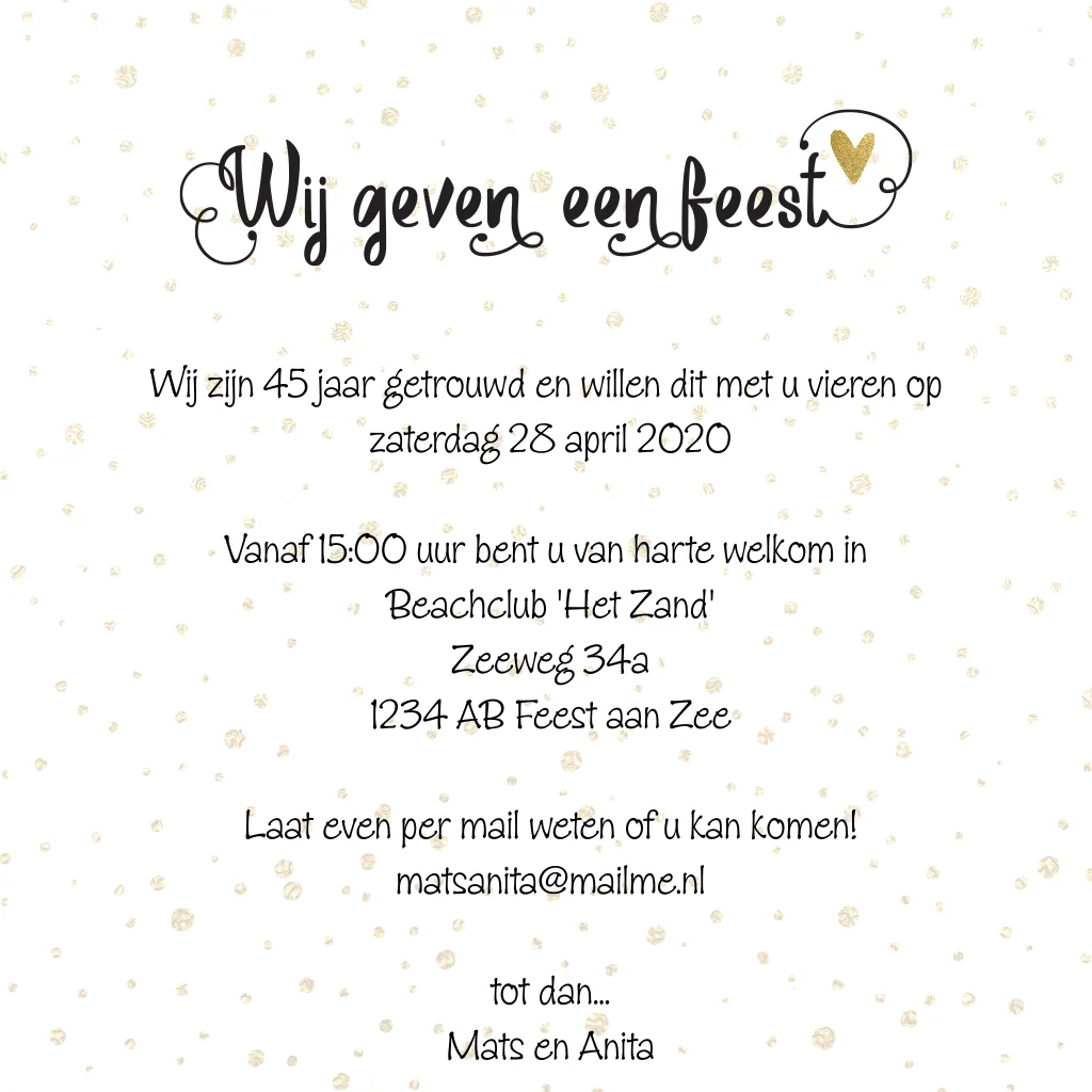 45 jaar getrouwd uitnodiging met goud confetti en handlettering
