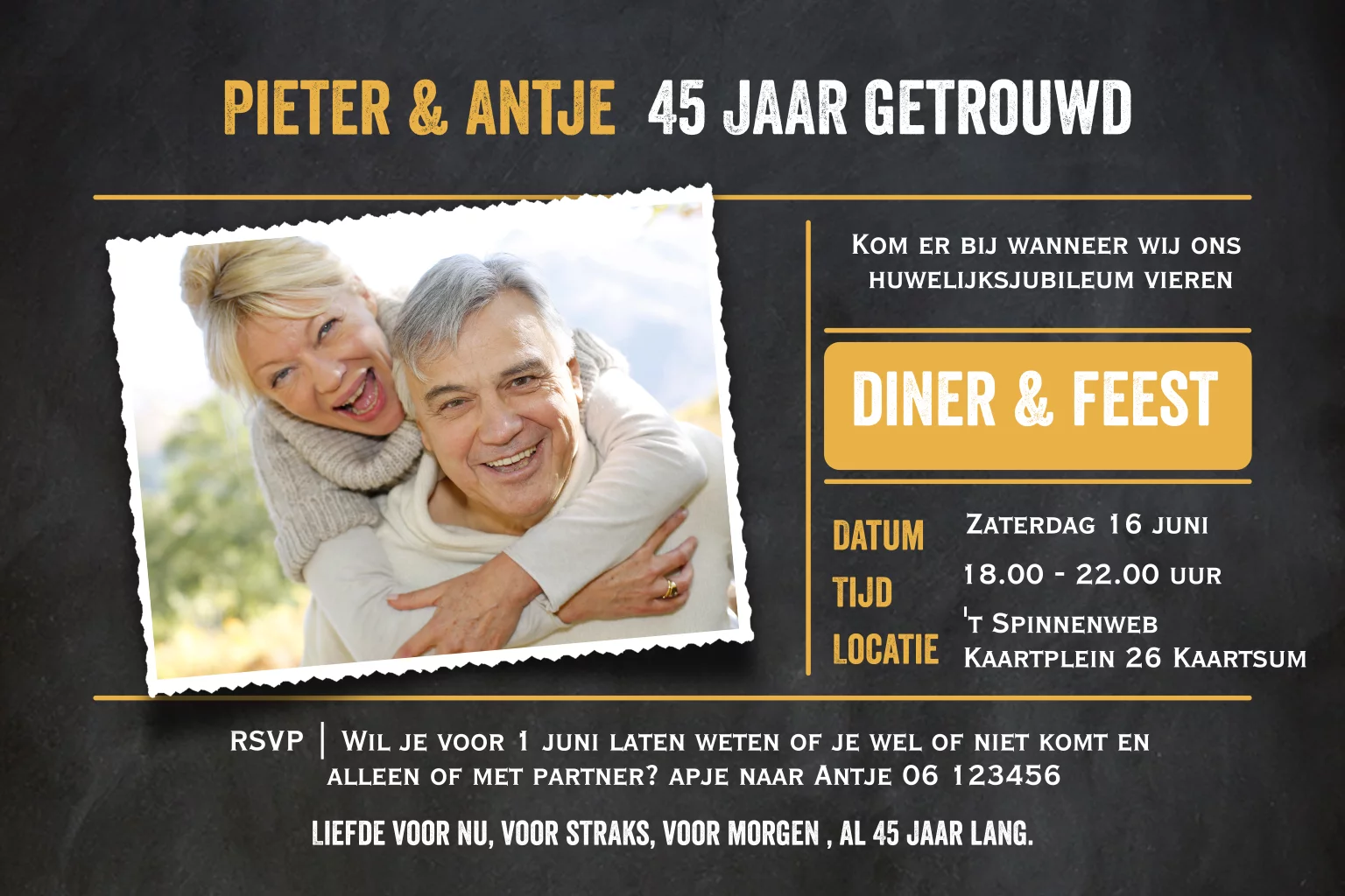 Uitnodiging 45 jarig huwelijksjubileum krijtbord