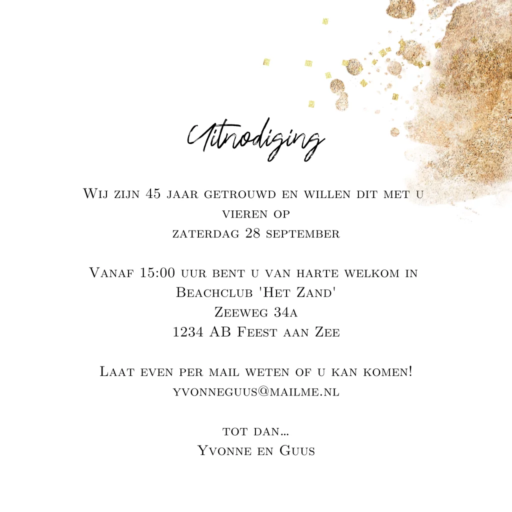 Uitnodiging 45 jarig huwelijksjubileum goud look
