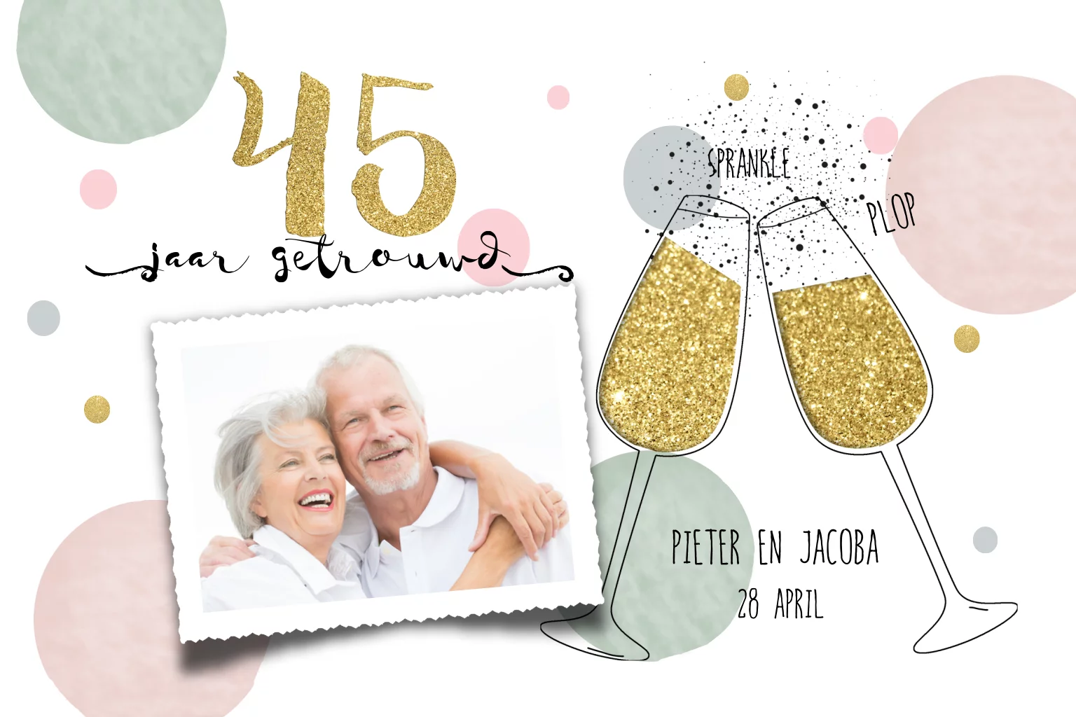 Unieke foto uitnodiging 45 jaar getrouwd champagne