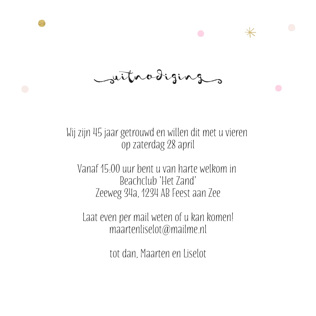 Eerdaags jullie 45 jarig huwelijks jubileum feest geven? Uniek uitnodiging ballon met waterverf effect, snippers, dots met het hippe hand lettering.
