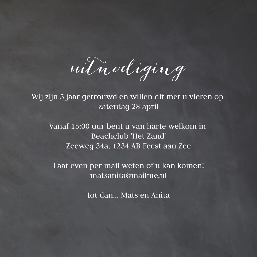 5 jarig huwelijksuitnodiging krijtbord met handlettering