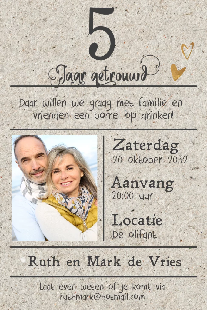 Enkele uitnodiging 5 jaar getrouwd lijn en kraft