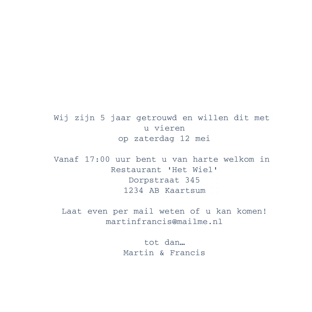 Romantische 5 jarig Huwelijks jubileumkaart navy blue