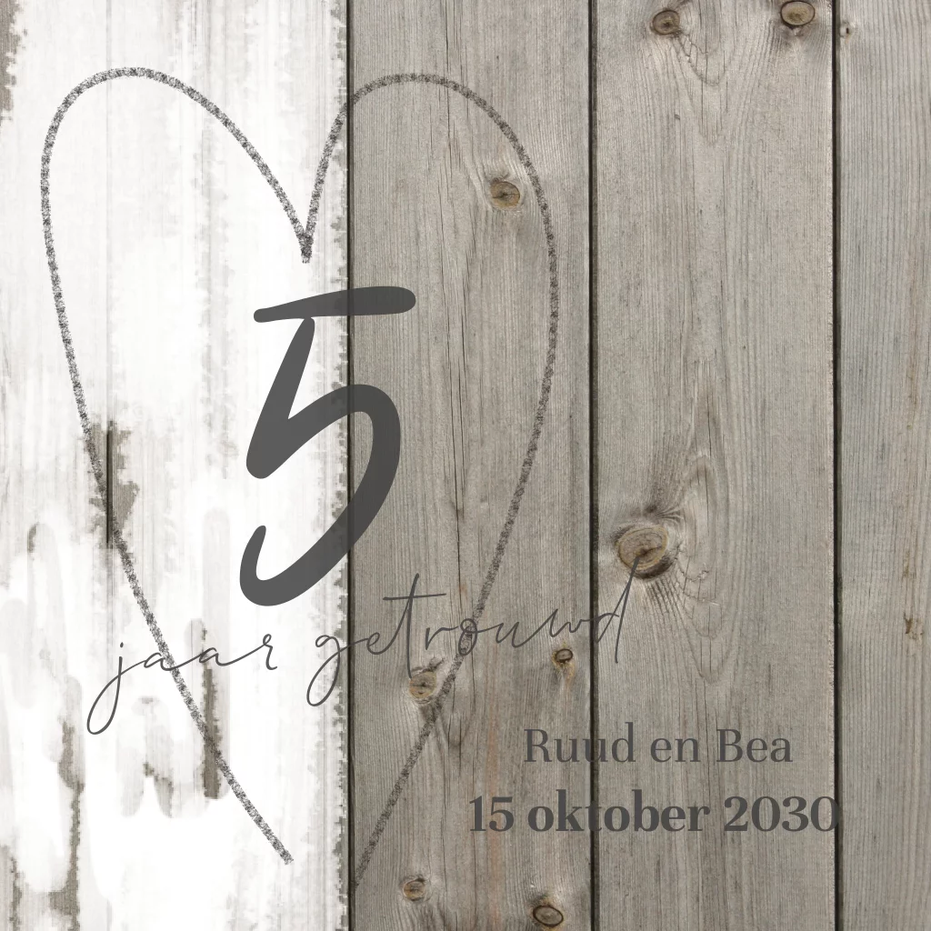 Uniek 5 jarig huwelijks jubileumkaart hout en verf