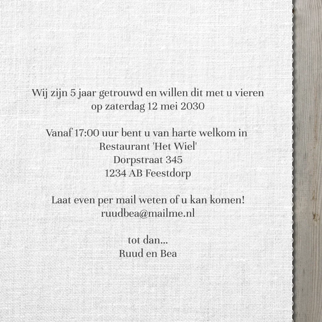 Stijlvolle uitnodiging met hout design en verf streep, linnen look aan de binnenzijde. Wijzig eenvoudig alle teksten en maak zo je eigen unieke kaart!