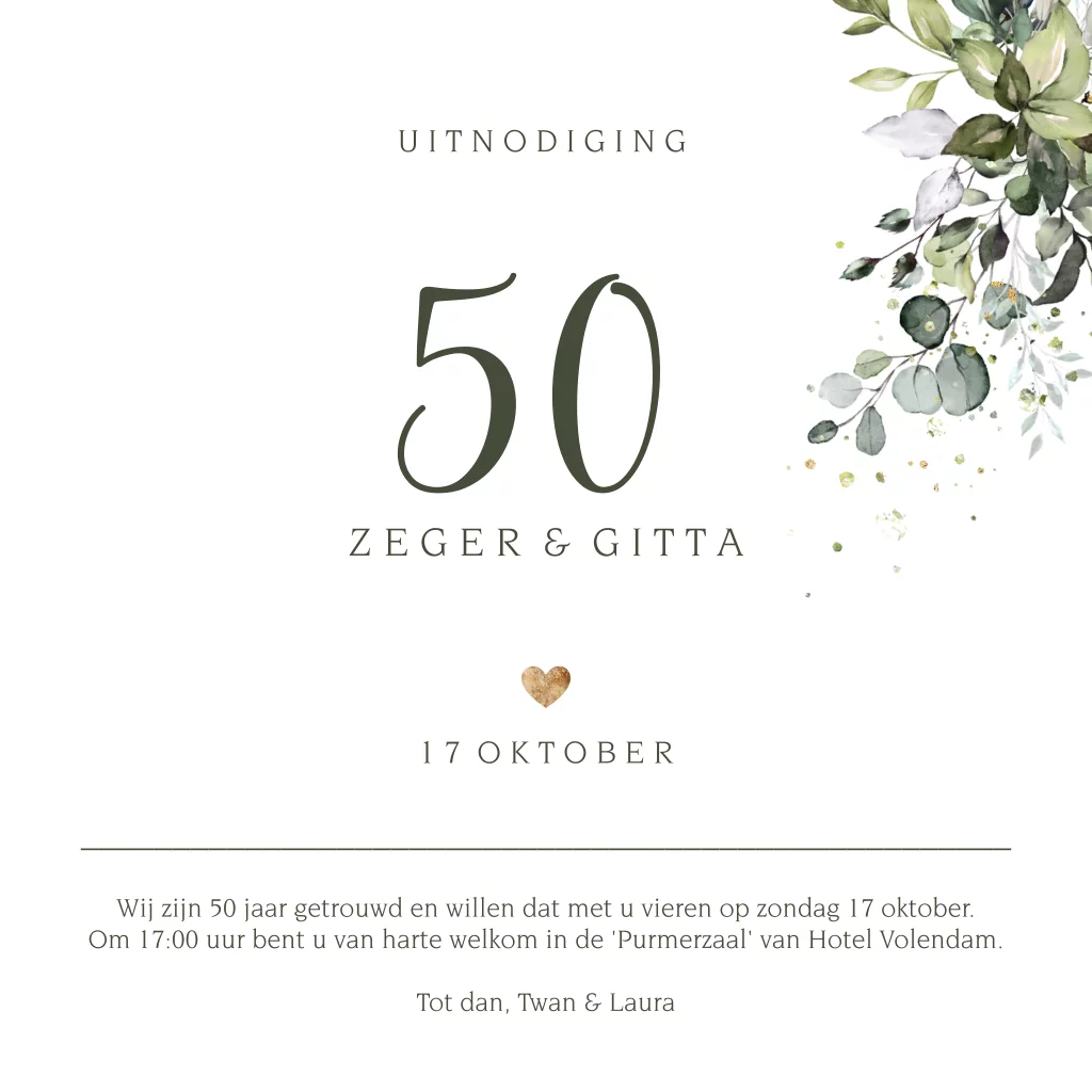50 huwelijks jubileum eucalyptus goudlook uitnodiging
