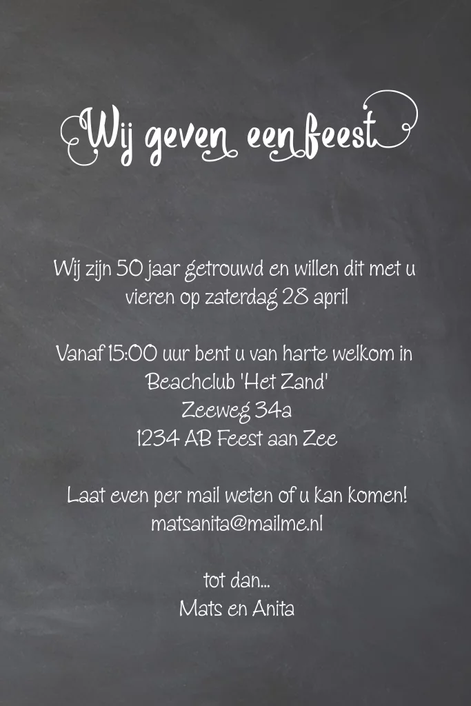 50 jaar getrouwd foto uitnodiging met krijtbord en hand lettering