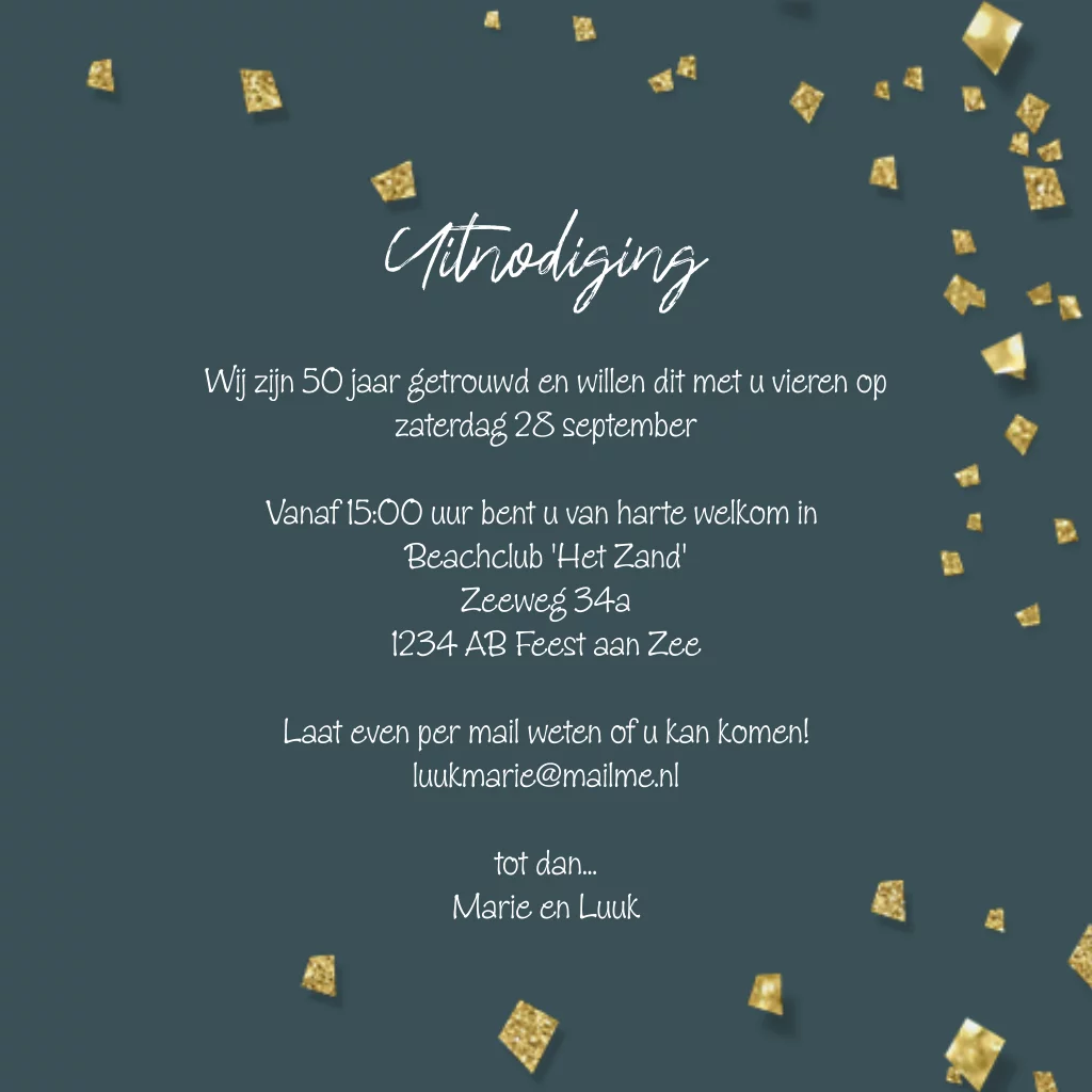 50 jaar getrouwd kaart foto met gouden confetti snippers