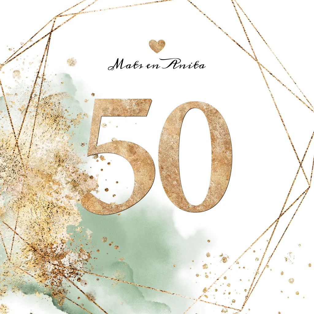 Gouden huwelijk 50 jaar uitnodiging groene watercolor geokader