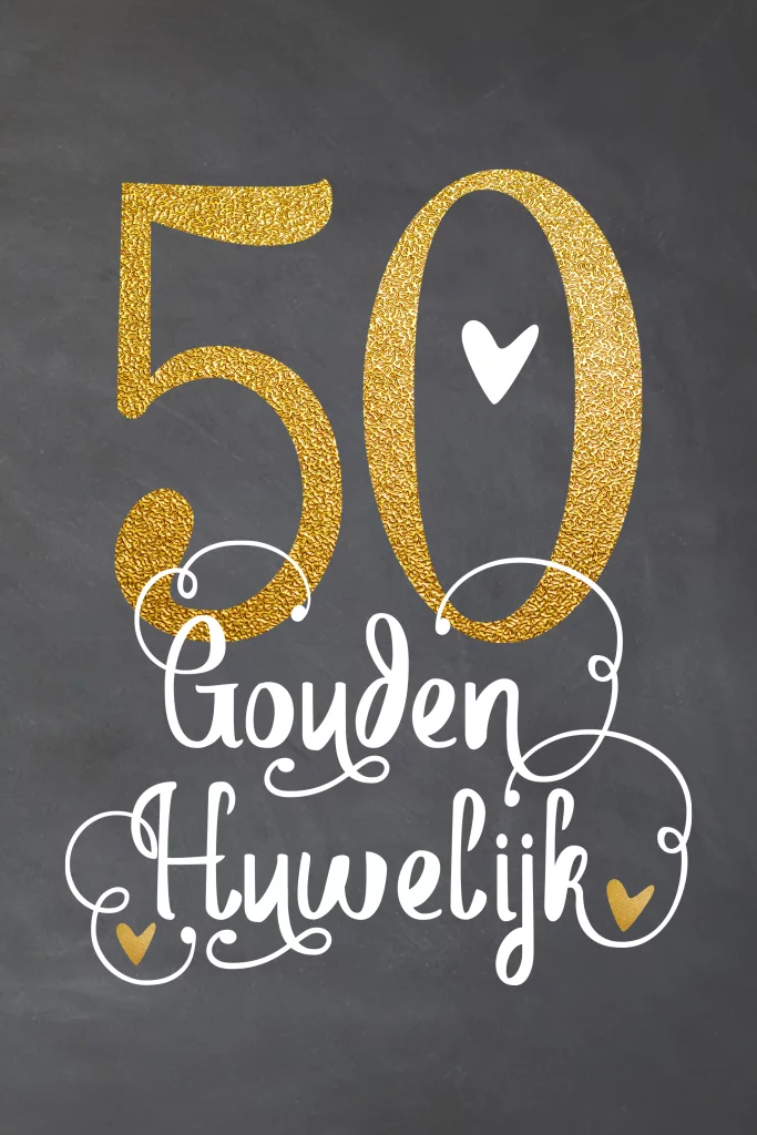 Eerdaags jullie gouden huwelijks jubileum feest geven? Mooie uitnodiging met foto kader, goud look (geen echt goud maar gedrukt!) krijtbord print en hand lettering.