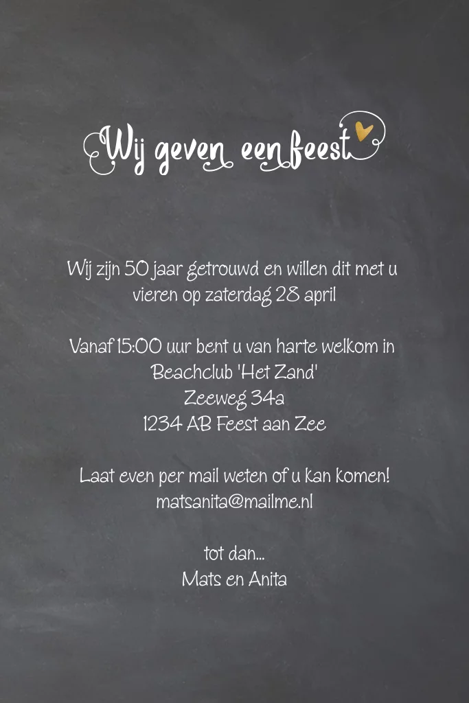 50 jaar getrouwd foto uitnodiging met krijtbord en hand lettering