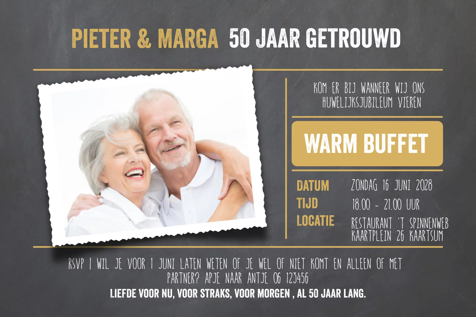 krijtbord look ticket uitnodiging 50 jaar getrouwd