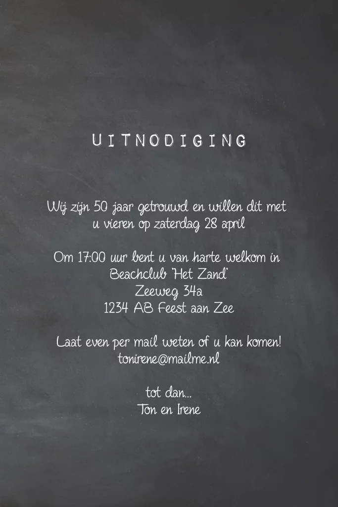 50 jaar getrouwd? Mooie staande uitnodiging met krijtbord pint en houten wegwijs pijlen. Zelf maken!