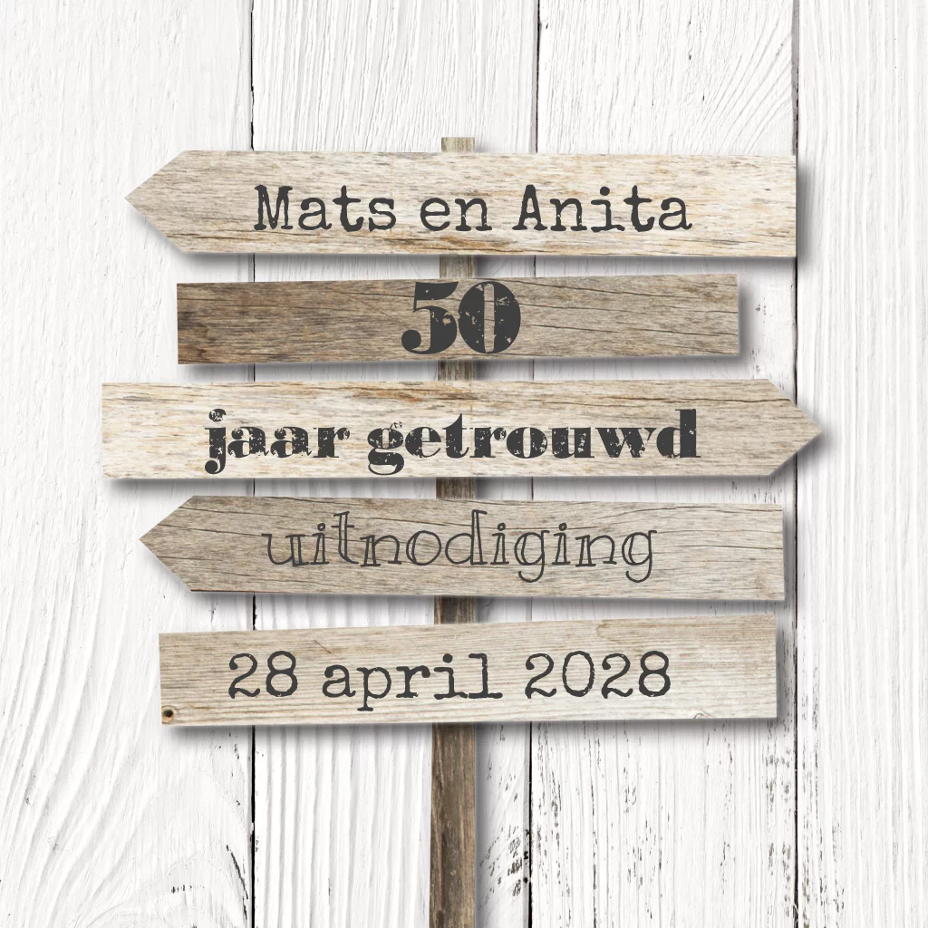 Uitnodiging 50 jaar huwelijk met hout en wegwijsborden
