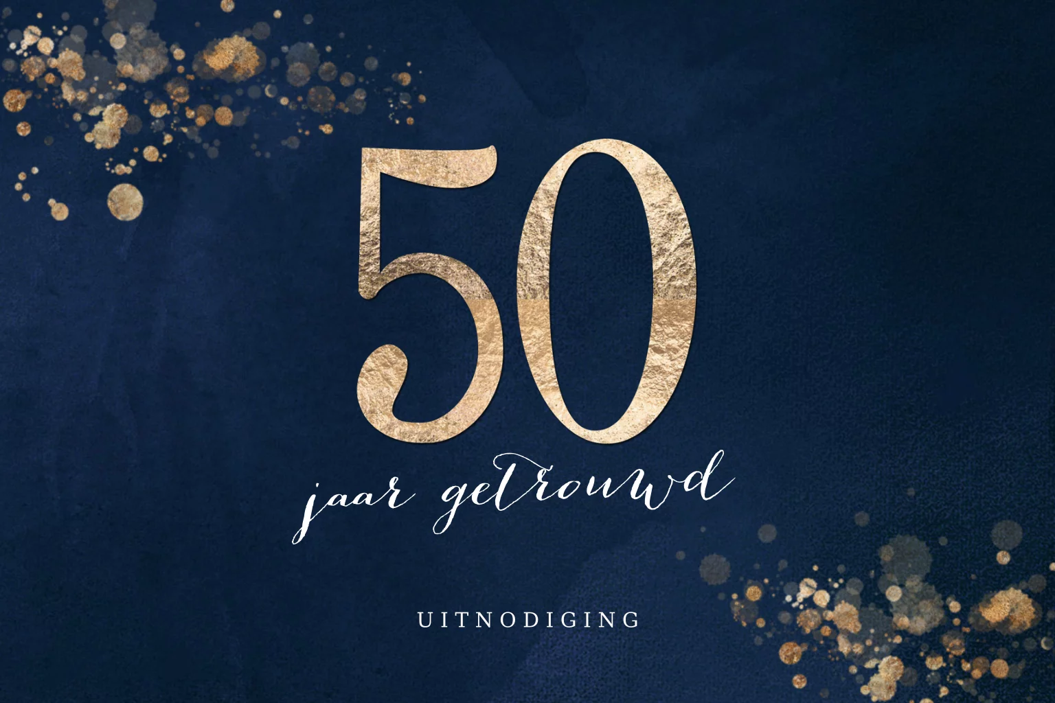 Uitnodiging 50 jarig huwelijksjubileum donkerblauw goudkleur