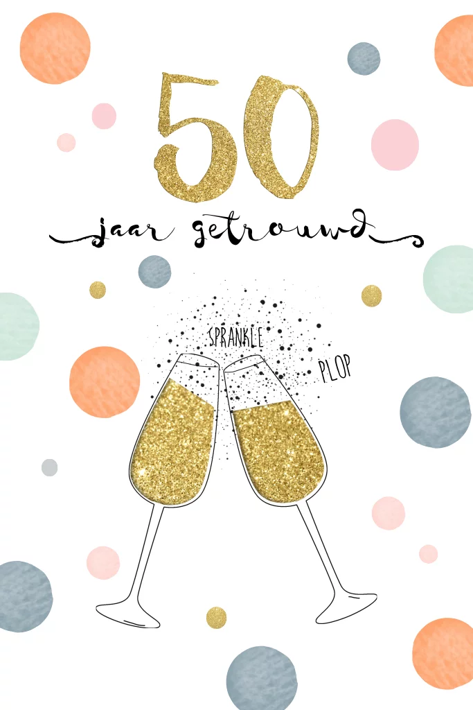 Hippe feestelijke uitnodiging 50 jaar getrouwd champagne glazen