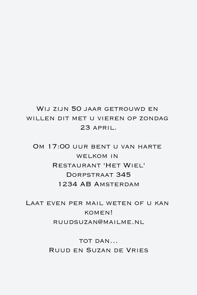Stijlvolle uitnodiging 50 jarig huwelijksjubileum hout