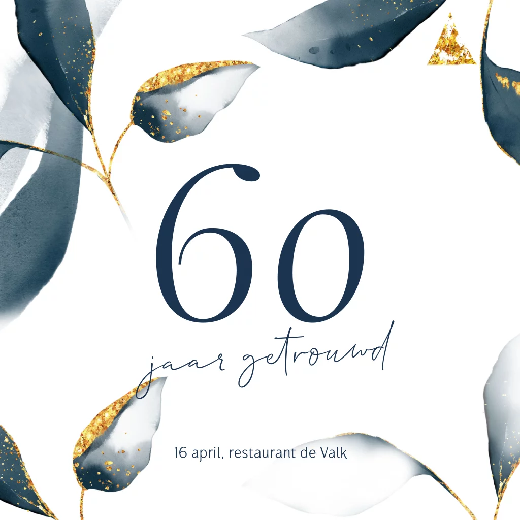 60 jaar getrouwd blauwe bladeren en goudpoeder