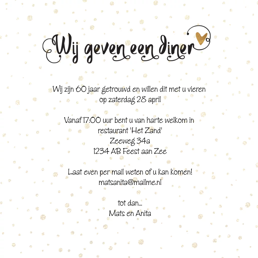 60 jaar getrouwd uitnodiging diner goud confetti en handlettering