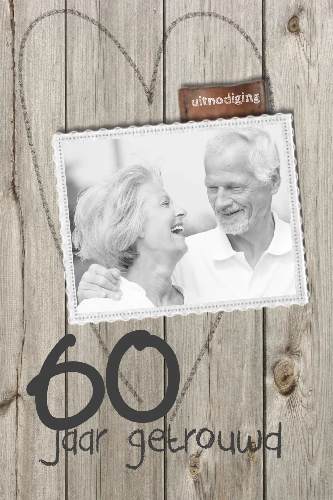 60 jaar getrouwd? Een mooie rechthoekige uitnodigingskaart met hout print met landelijke stijl.
