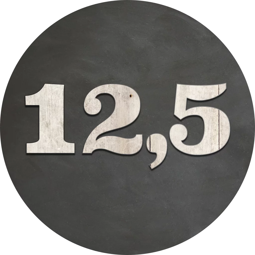 Deze sluitzegel met 12,5 in hout look en krijtbord look op de ondergrond kun je zelf aanpassen. Zelf klevend voor envelop.