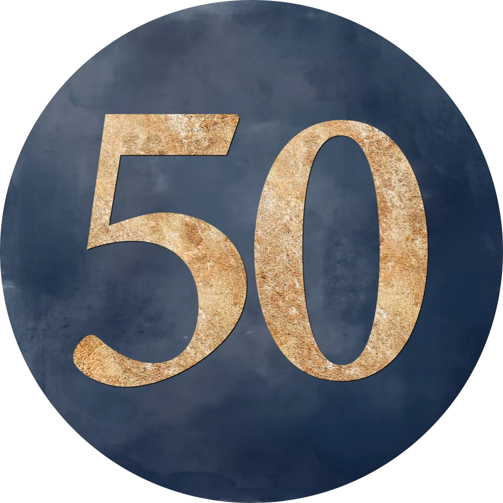 Deze sluitzegel met 50 goudpoeder look op een donkerblauwe watercolor ondergrond kun je zelf aanpassen. Zelf klevend voor envelop.