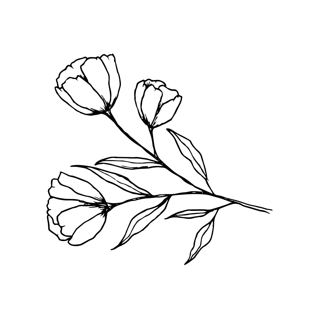 Deze sluitzegel met outline bloem op een witte ondergrond kun je zelf aanpassen. Zelf klevend voor envelop.