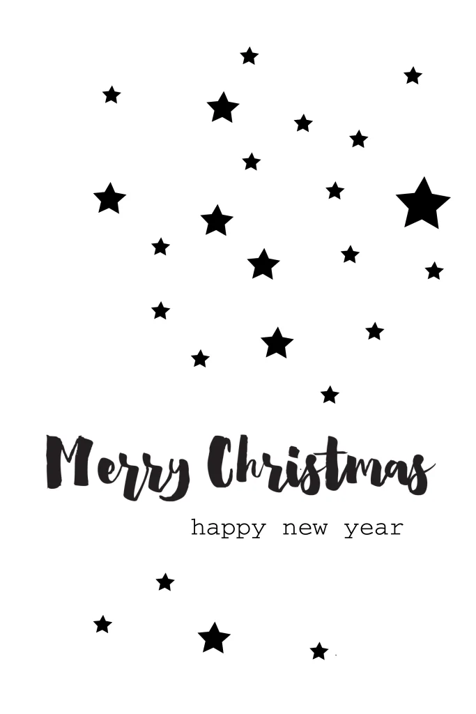 Hippe zwart wit kerstkaart met speels vallende sterretjes