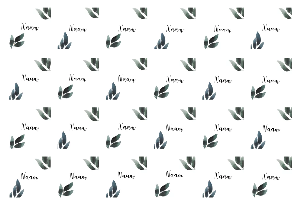Maak jullie bruiloft compleet en bestel naamkaartjes in de stijl van jullie trouwkaart. Pas gemakkelijk het design zelf aan en ga aan de slag met onze editor. Voeg zo super simpel elementen zelf toe of verwijder details, die jij minder mooi vindt. Wist je dat je met een lettertype bijvoorbeeld een hele andere look kan creëren? Specificaties: • 24 stuks per vel. • Formaat: 6x6 cm. • Enkelzijdig bedrukt. • Papiersoort: coated karton. Tip van onze makers: • Gebruik de naamkaartjes ook tijdens jullie ceremonie als plaatskaartjes.