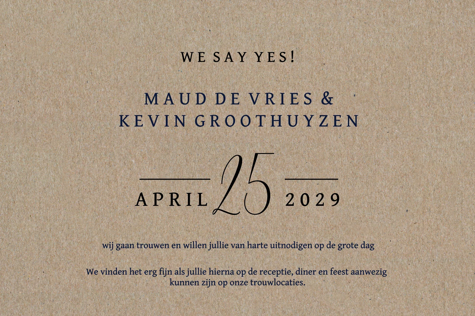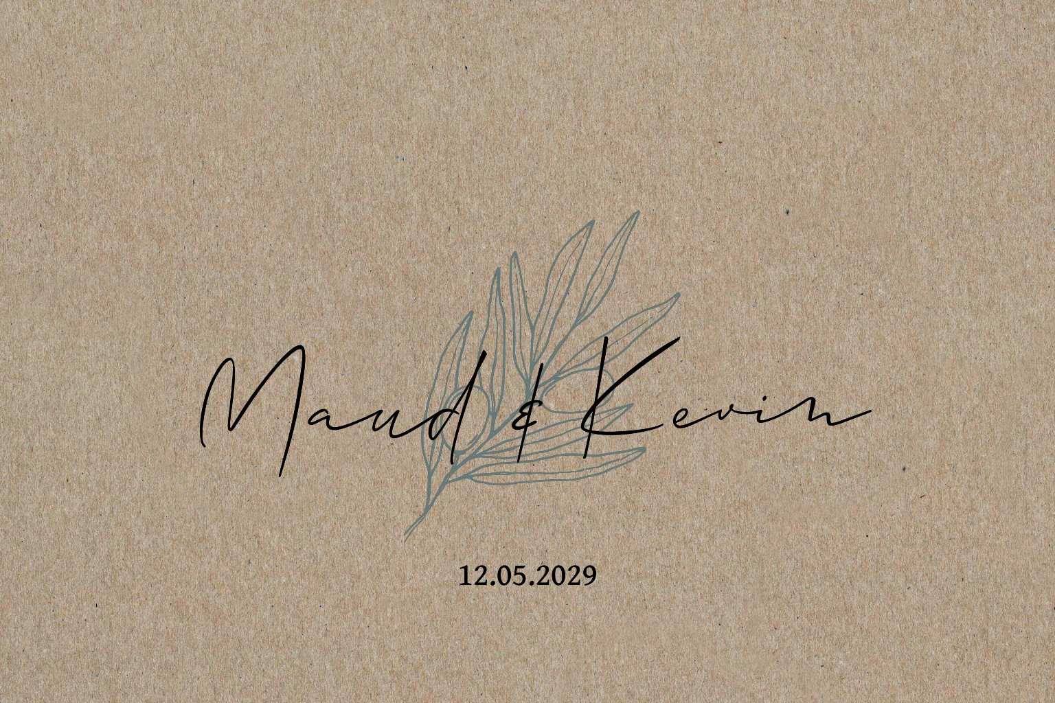 Chique dubbele trouwkaart met echt kraft papier en olijfblad. Alles staat los en is zelf te bewerken.