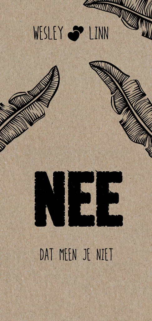 Trouwkaart NEE jungle gedrukt op echt kraft papier