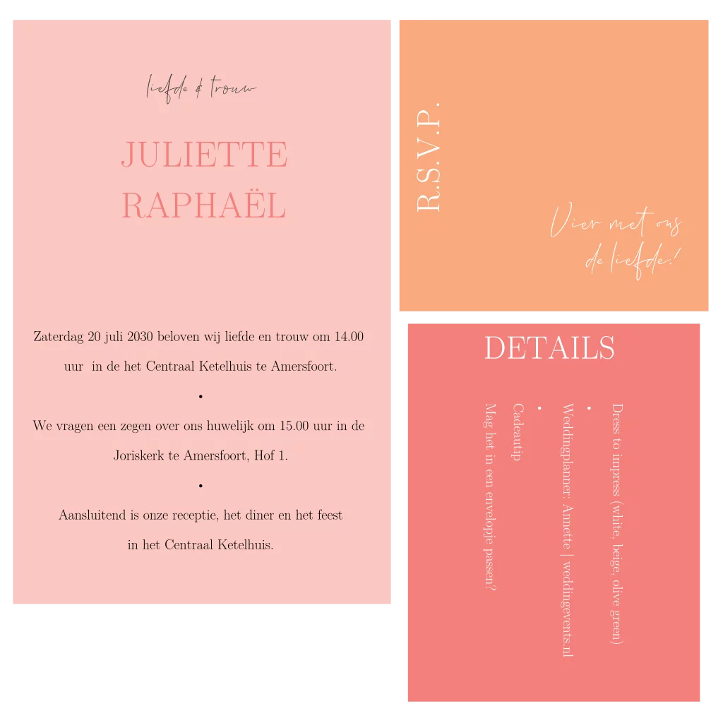 Let op: omdat je kunt kiezen voor verschillende soorten bevestigingsmateriaal, zoals een touwtje of paperclip bestel je het bevestigingsmateriaal van jouw voorkeur los bij de kaart. Wanneer je deze trouwkaart thuis krijgt, zet je ze hiermee zelf in elkaar.