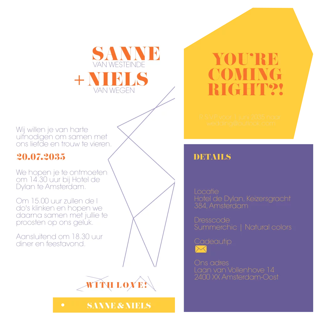 Moderne trouwkaart, 3 kaarten en labeltjes