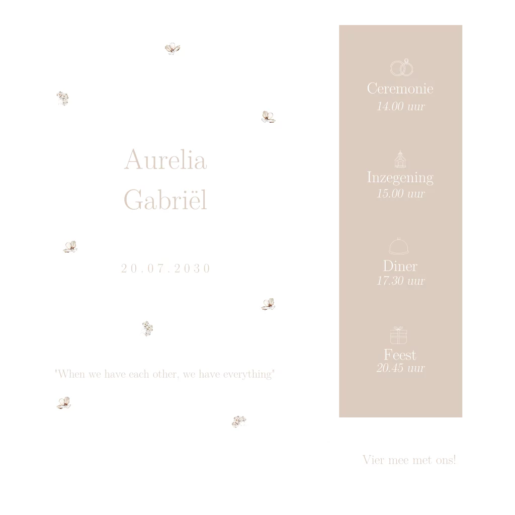 Stapelkaart met droogbloemetjes, kaartje met programma en labeltje