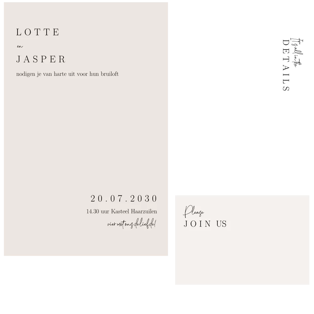 Stapelkaart trouwkaart chic en minimalistisch. (999999)