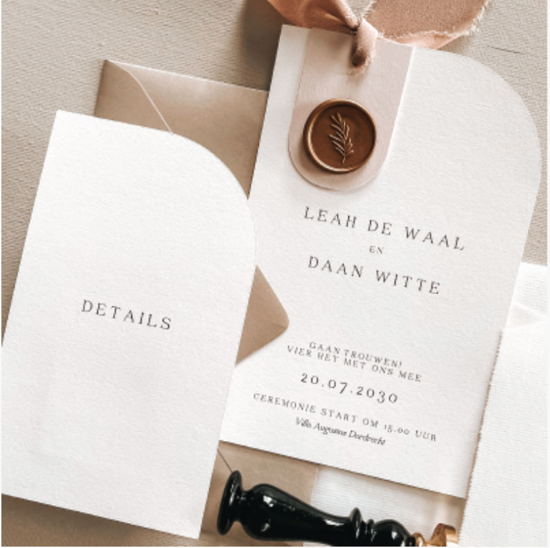 Trouwkaartset met label en waxzegel
