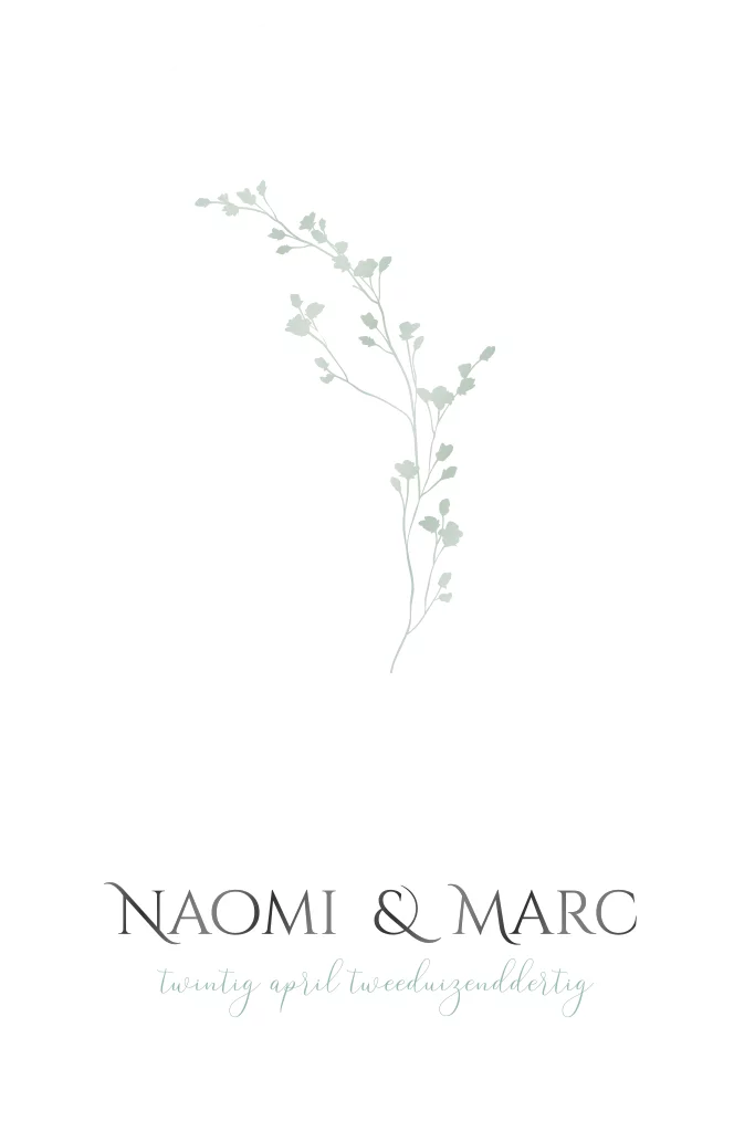 Boogvormige trouwkaart met hoogglans lak en takje. (999999)