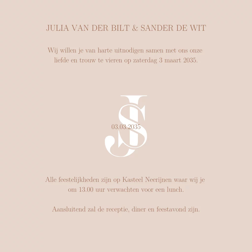 Klassieke trouwkaart met gestanst venster en kader. (999999)
