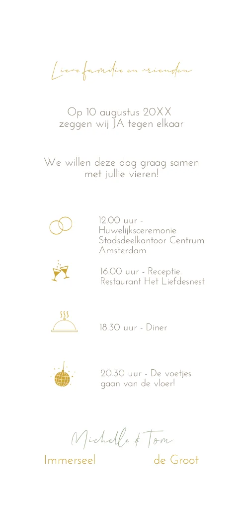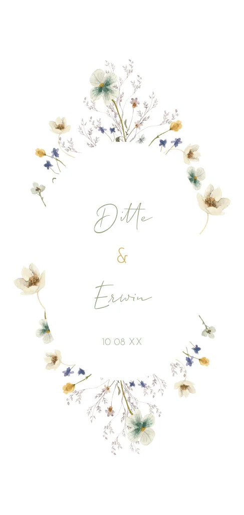 Een mooie staande uitnodiging met waterverf bloemetjes in zachte kleuren. Deze kaart kun je eenvoudig zelf bewerken door de teksten en het lettertype aan te passen. Plaats naar wens een leuke foto van jullie samen!