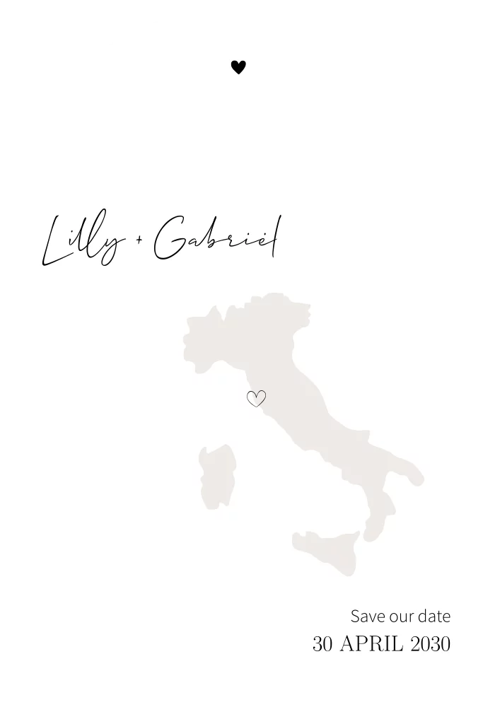Gaan jullie trouwen in het buitenland, bijvoorbeeld Italie? Dan is deze save the date een prachtige aankondiging om iedereen te laten weten waar jullie “I do” zeggen! (999999)