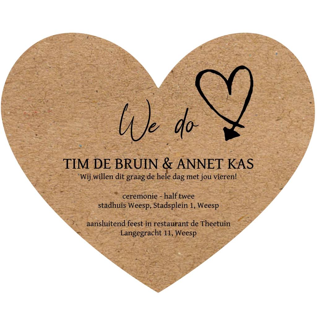 Trouwkaart bijzondere vorm hart kraft look
